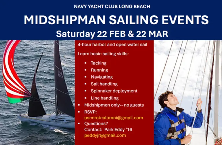 Alumni League and Navy Yacht Club Long Beach offer sailing opportunities to the Trojan Battalion