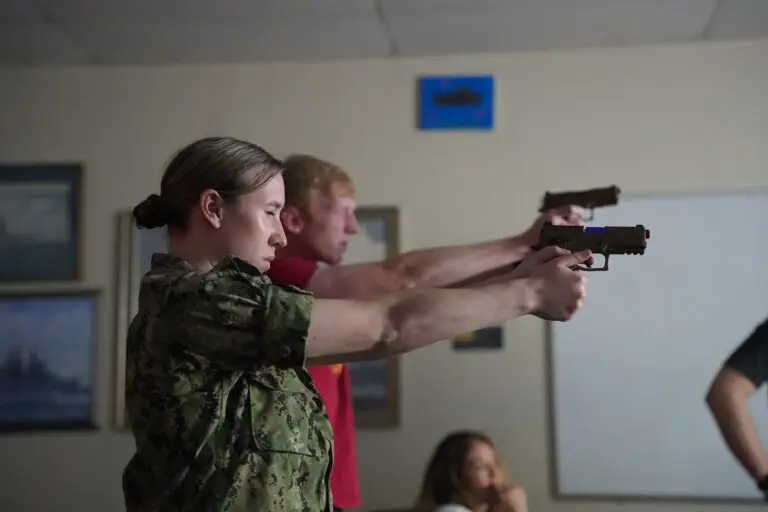 First, the midshipmen participated in a three-hour range safety class to review basic gun safety and shooting principles. The latter half of the day was spent shooting live on the range. This was a great opportunity for our midshipmen to practice core marksmanship skills and shooting techniques. Participants were:
