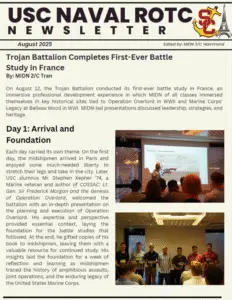12-18 August: 26 members of the Trojan Battalion, 2 Alumni and Professor Zerunyan traveled to France for a Battle Study of the Normandy invasion (WWII) and Belleau Wood (WWI). The plan is to make this an annual event and a limited number of alumni are invited to join.