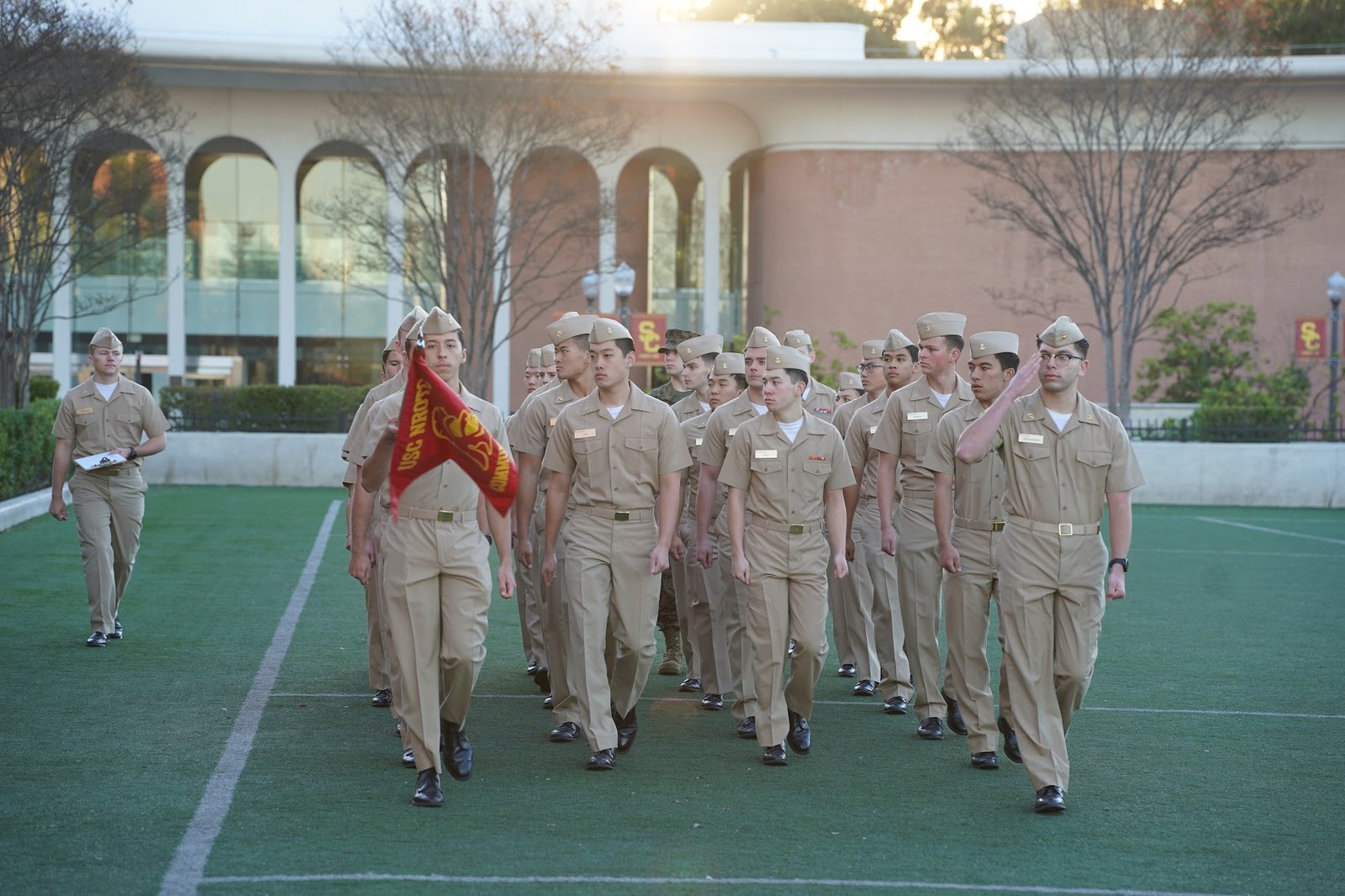 25 October: 14 members of the Trojan Battalion participated in a Field Exercise at Camp Pendleton along with MECEPs and midshipmen from UCLA and Cal Berkeley. Events included Night Land Nav, Endurance Course, Day Land Nav, and Small Unit Leadership Evaluations (SULEs). MIDN 4/C Lee was recognized as the outstanding Navy Option, while MIDN 3/C Banks won the Teufel Hunden Award as the top Marine Option.