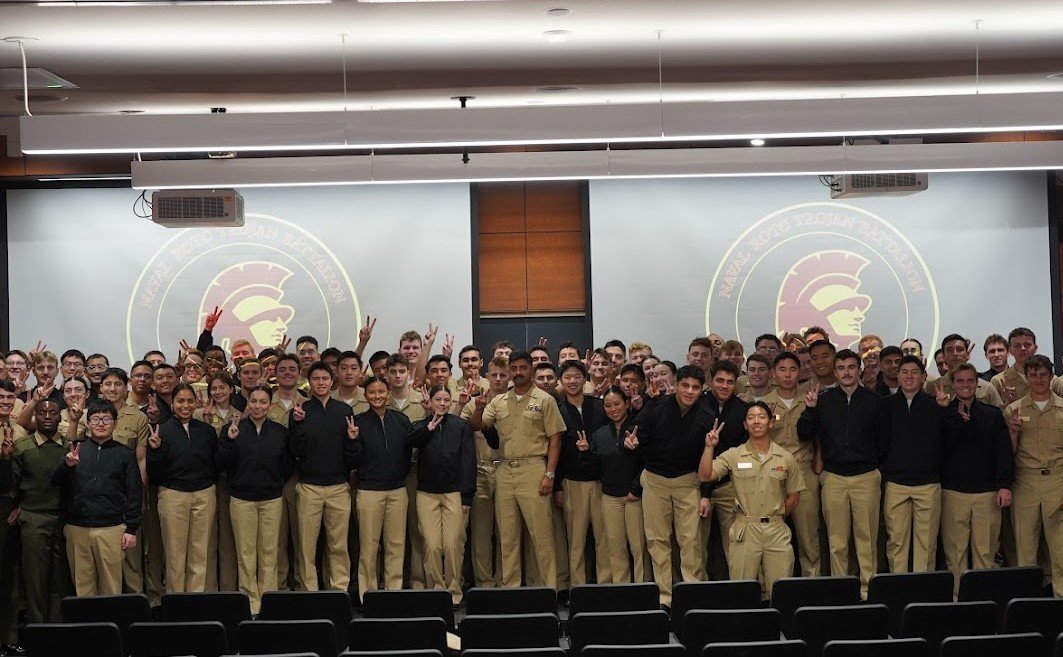 On 19 April, the USC Trojan Battalion proudly hosted the annual Benner Trophy, a day-long competition against the UCLA Bruin Battalion in a spirited test of physical endurance, mental sharpness, and unit cohesion. This year’s event was especially exciting with the addition of several new events, bringing the total to seven dynamic challenges: Shooting, Knowledge Drill, Dodge Ball, Tug-O-War, Damage Control, and Basketball. The Benner Trophy remains a cornerstone event for the battalion honoring Bob ‘45 and Carole Benner while offering the midshipmen a chance to demonstrate their progress, bond with teammates, and take pride in their training. UCLA walked away with the trophy with a 0.05 point lead, however, the Trojan Battalion is ready to bring the trophy back home next year.