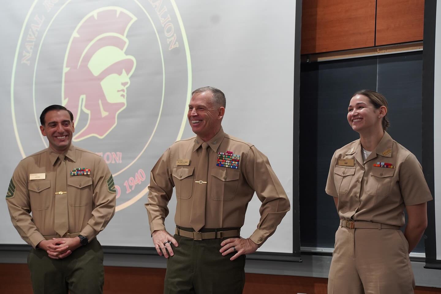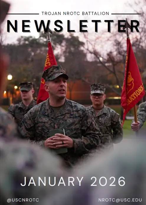 CAPT Brian Bungay ’04, CO of NAVBASE San Diego, was a guest speaker. Col Gene Colabatistto ’82 was presented with the first piece of cake as the oldest Marine present. The Trojan Battalion also used this special occasion to honor Ms. Marsha Stoughton, a devoted member of the unit staff from 2001 to October 2025. She has witnessed the commissioning of over 400 Naval and Marine Corps officers and was the backbone of the unit. A special video tribute to “Ms. Marsha” was created by the midshipmen and it can be viewed at our YouTube channel: www.youtube.com/@USCNROTC.