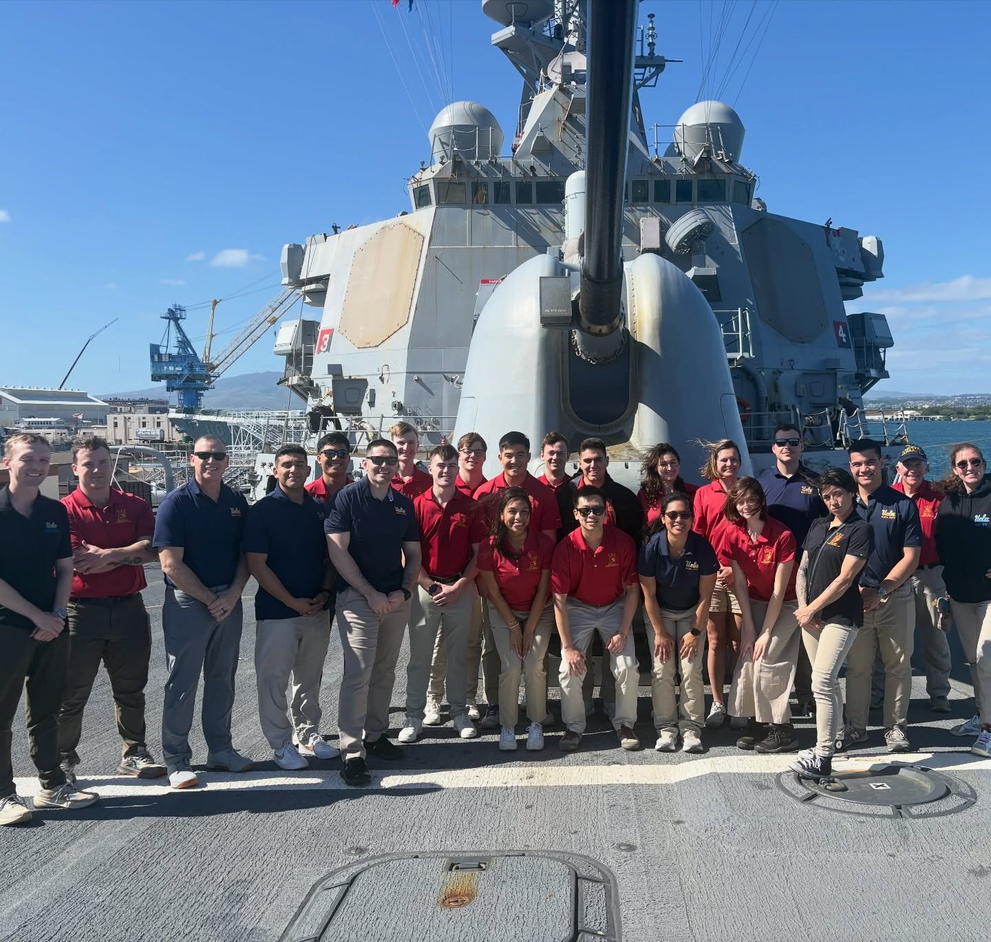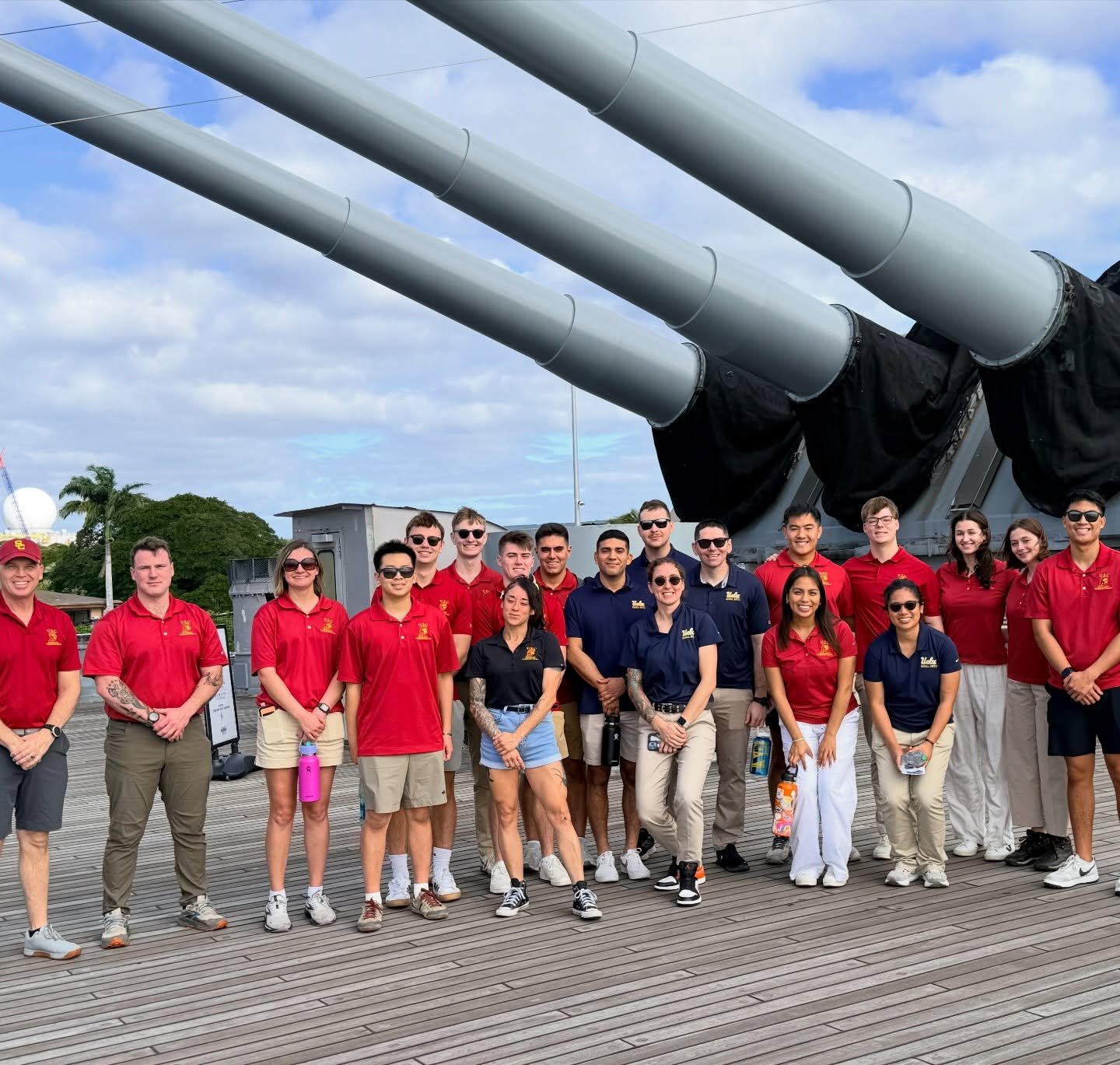 15-19 January: 1/C midshipmen of the Los Angeles NROTC Consortium traveled to the island of Oʻahu, Hawaiʻi for their senior battle study. Immersed in Naval history, they visited significant historical sites such as the USS Missouri, Hospital Point, the USS Utah Memorial, and the USS Arizona Memorial. A tour of the USS Decatur (DDG 73) was also on the agenda. Beyond their academic experiences, the midshipmen bonded as a senior class by embracing the local life through activities such as canoeing at Rainbow Bay and hiking Koko Head. To conclude the study, the 1/C midshipmen further immersed themselves in Hawaiian history with a visit to the Nuʻuanu Pali Lookout, where they examined the Battle of Nuʻuanu and the tactics and leadership employed by King Kamehameha I to reunite the Hawaiian Islands.