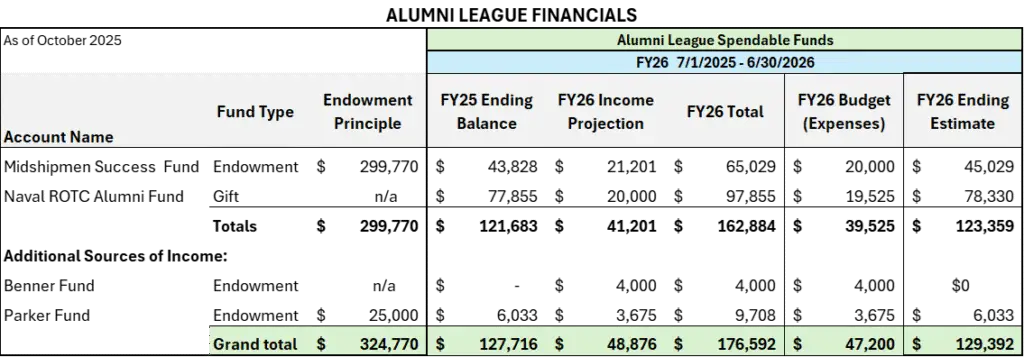 Update on the Alumni League Midshipmen Success Endowment Fund (September 2025)