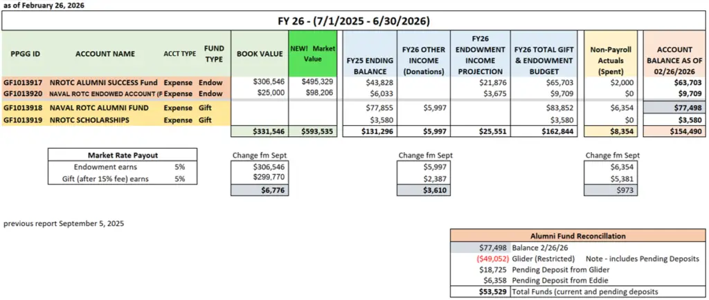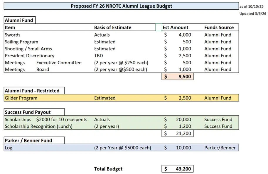 FY26 NROTC Alumni League Budget (updated 6 Mar 26)